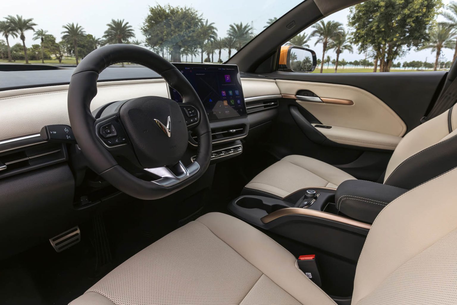 Với lợi thế của xe điện phần động cơ không chiếm nhiều diện tích và các khối Pin gắn ở phần sàn xe, và chiều dài cơ sở lớn giúp mang đến không gian nội thất tối ưu cho VF6, tương đương những mẫu xe thuộc phân khúc C sử dụng động cơ đốt trong.