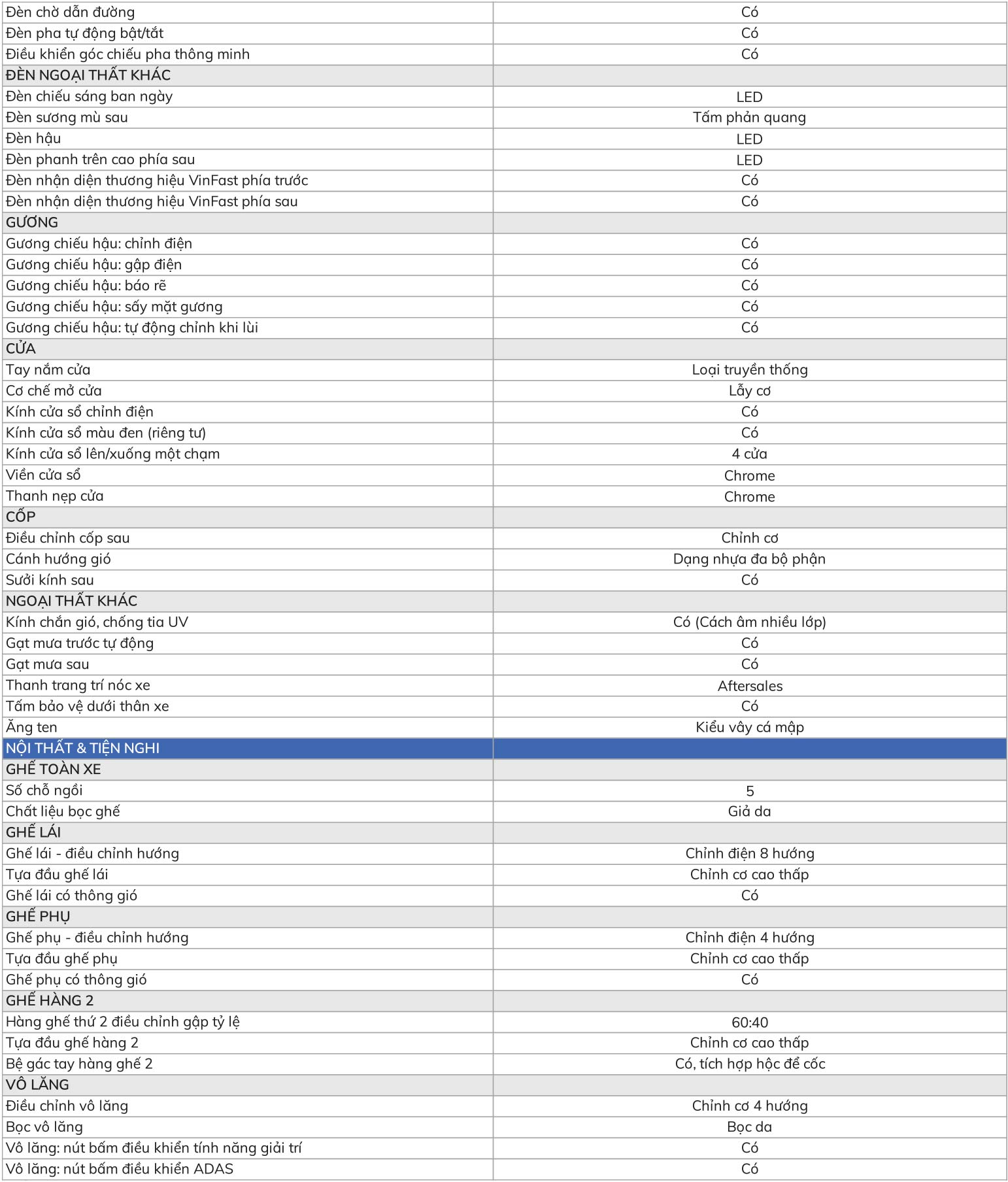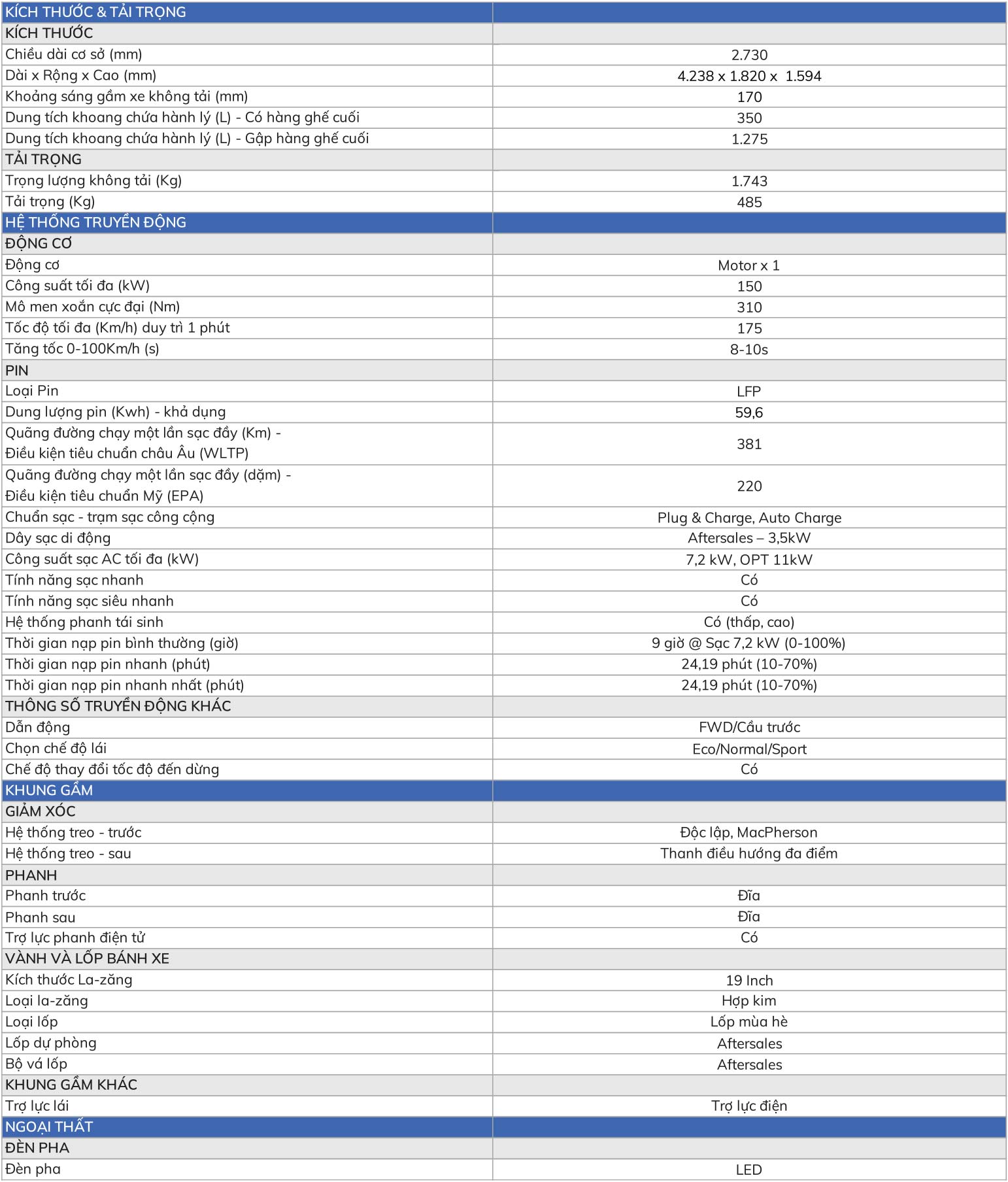 Thông số kỹ thật đầy đủ VF6 Plus