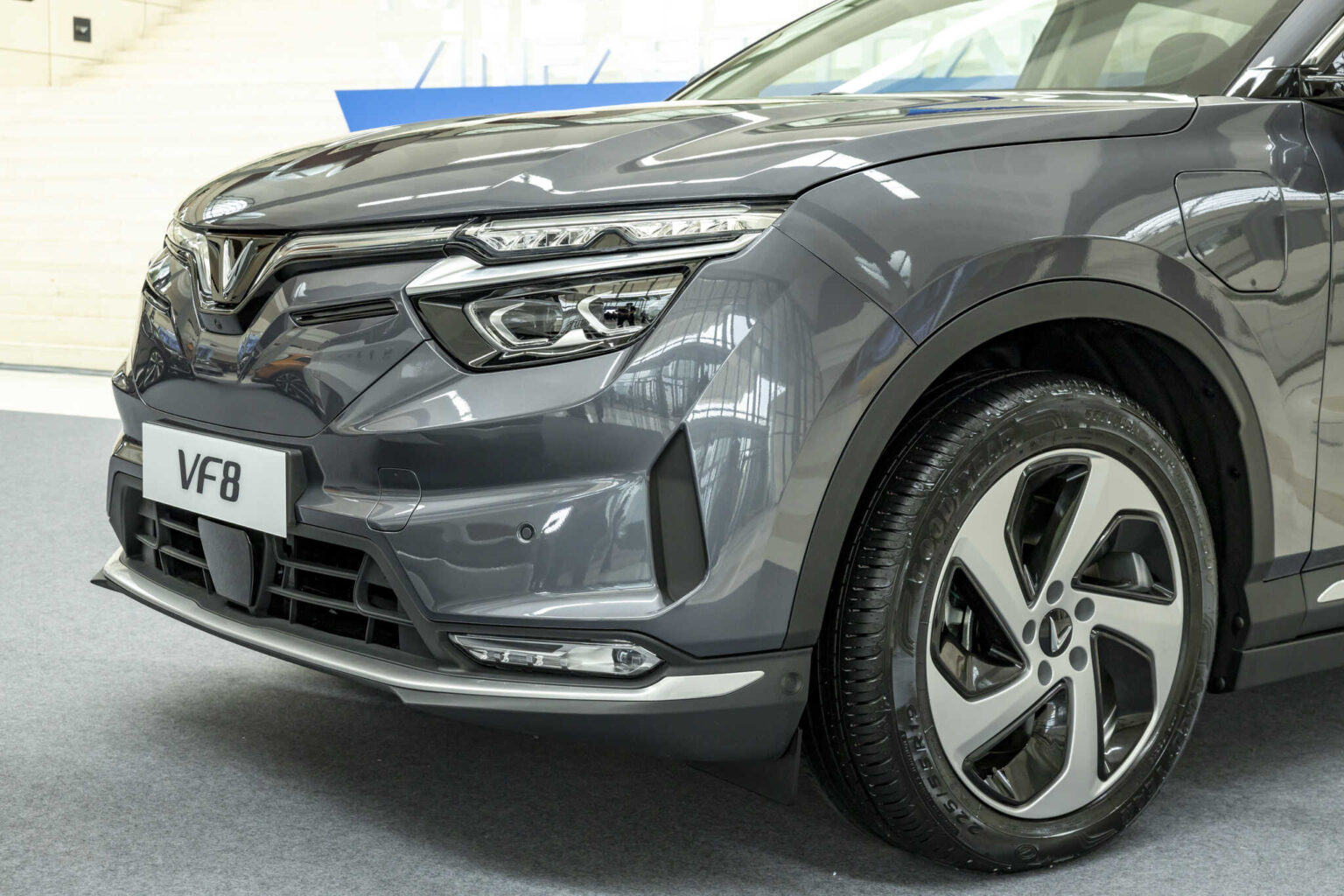 Với chữ “V” nổi bật trên mũi xe, ngay lập tức có thể nhận ra đây là một chiếc VinFast khi nhìn trực diện.
